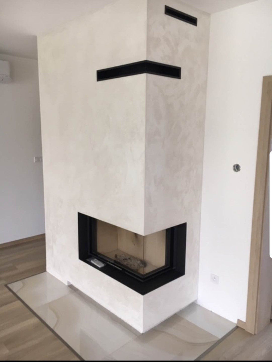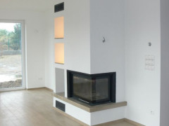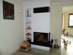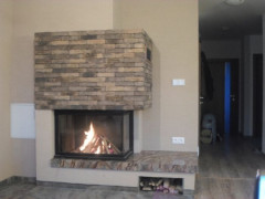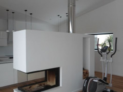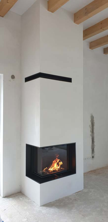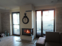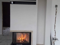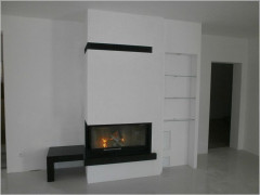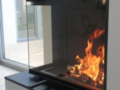 - krb s trojstrannou krbovou vložkou (presklenie krbovej vložky pozostáva z troch strán, preto je možné oheň pozorovať zo všetkých uhlov v miestnosti)