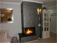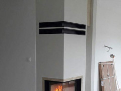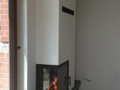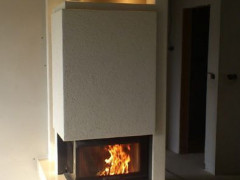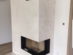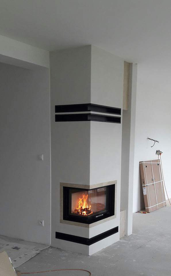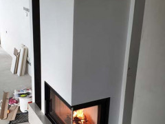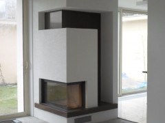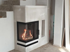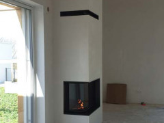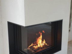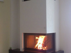 - krb s rohovým bočným presklením krbovej vložky (jeho prednosťou je to, že umožňuje vnímať oheň z dvoch strán)